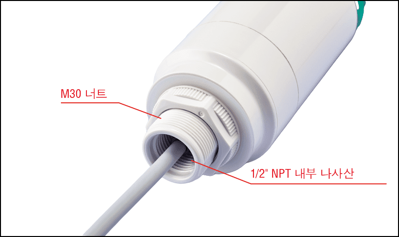 - 30mm 장착 구멍을 통한 직접 장착 또는 ½” NPT 파이프를 사용한 폴 마운트