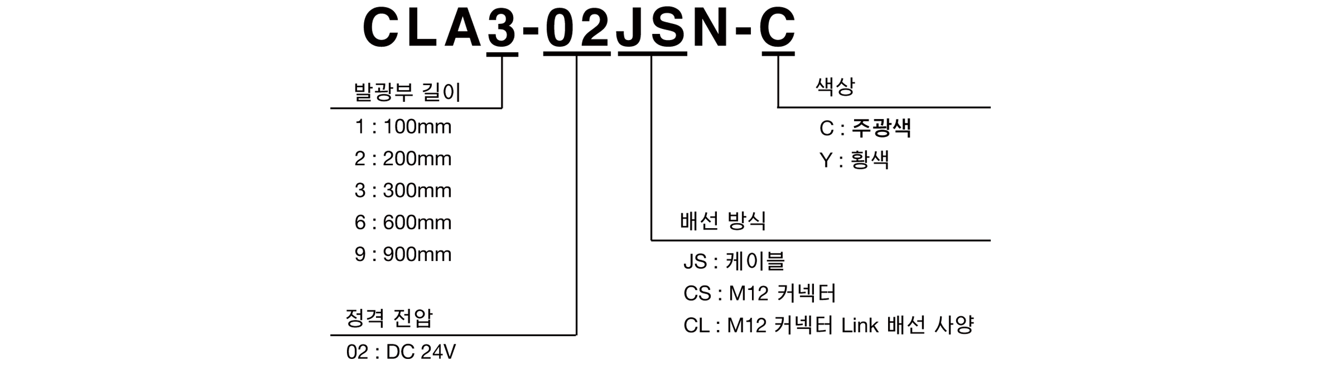 | CLA6-02CSN-C | 600mm | DC 24V | M12 커넥터 (4핀) | 주광색 |