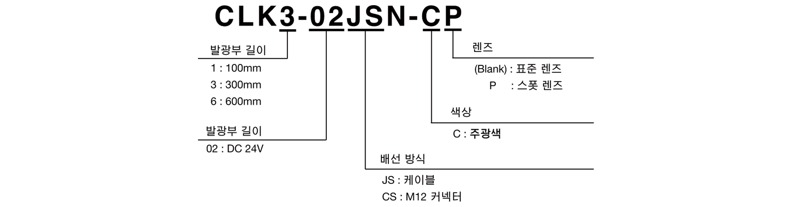 | CLK3-02JSN-C | 300mm | DC 24V | 케이블 | 주광색 | 표준 렌즈 |