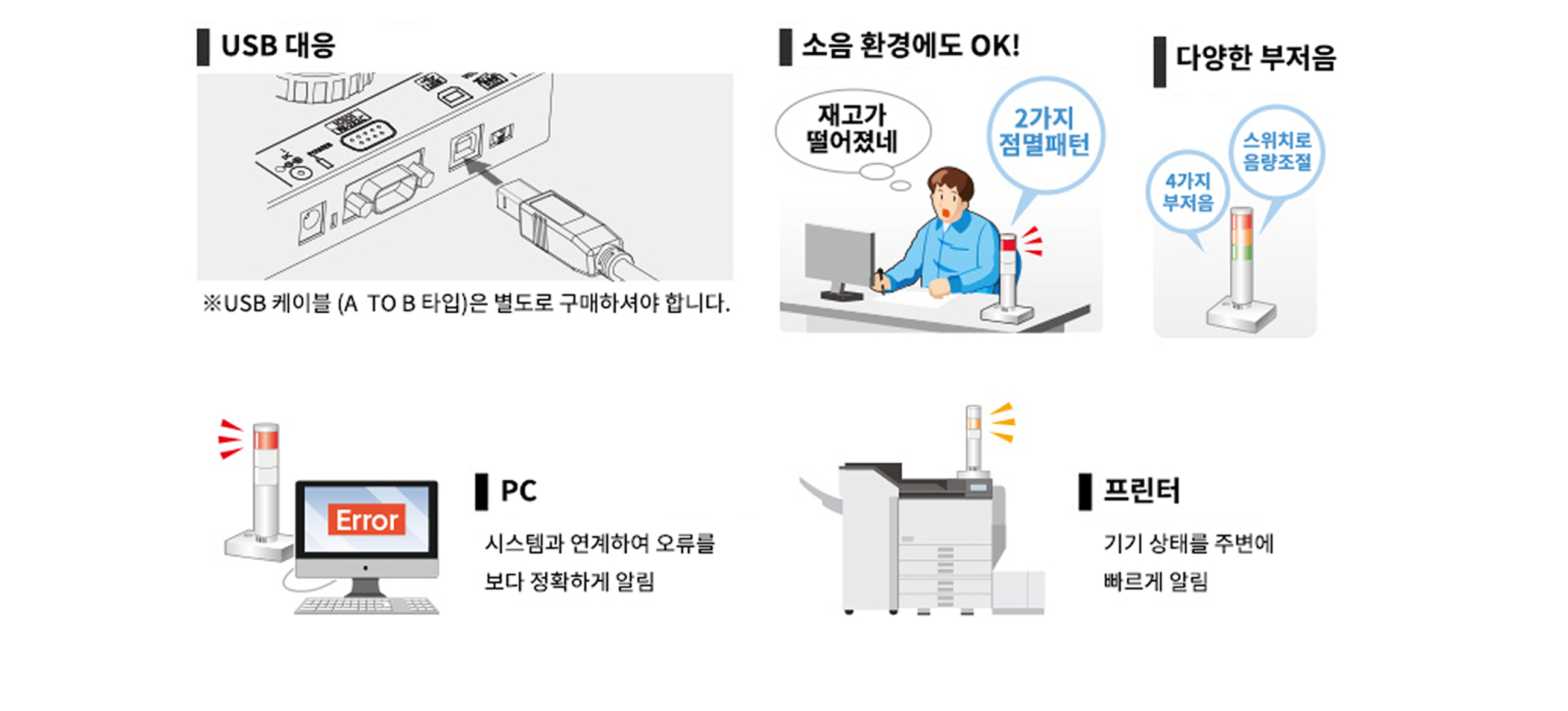 USB 케이블(A타입 수놈 ↔ B타입 수놈)은 포함되어 있지 않습니다. 별도로 구매하십시오.